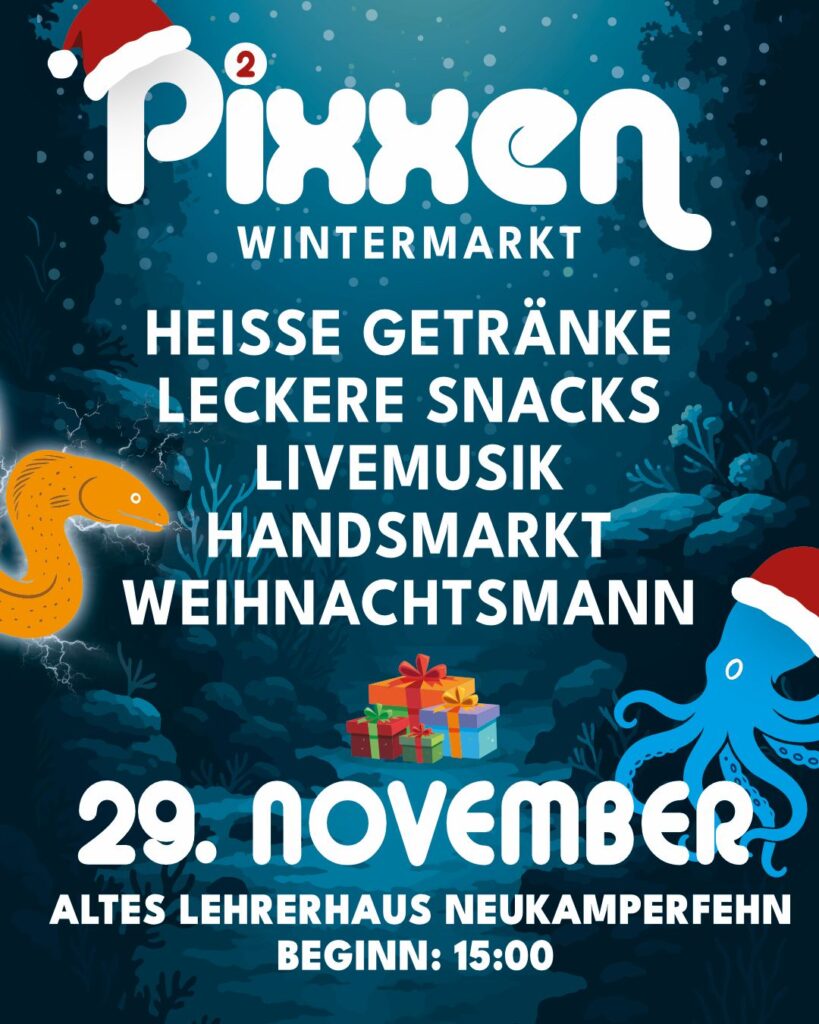 Kommt gerne vorbei mit euren Familien und Freunden, der Eintritt ist natürlich frei. Das Pixxen Team sorgt für Glühwein, Grog und alkoholfreies, während andere örtliche Vereine sich um die weitere Verpflegung kümmern!